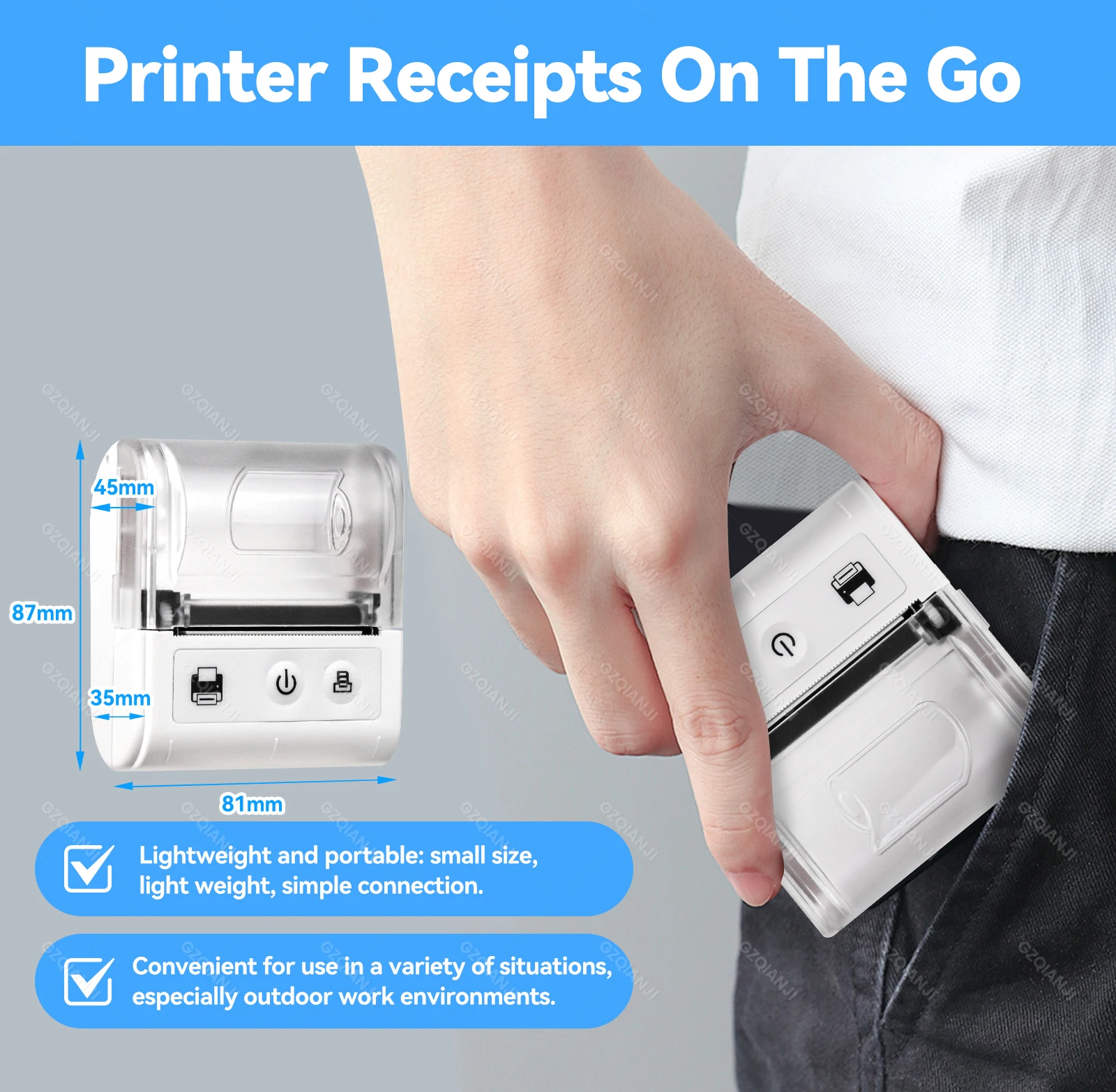 Direct thermal printing, eliminating the need of ink cartridge or consumable, environmental friendly and money saving.