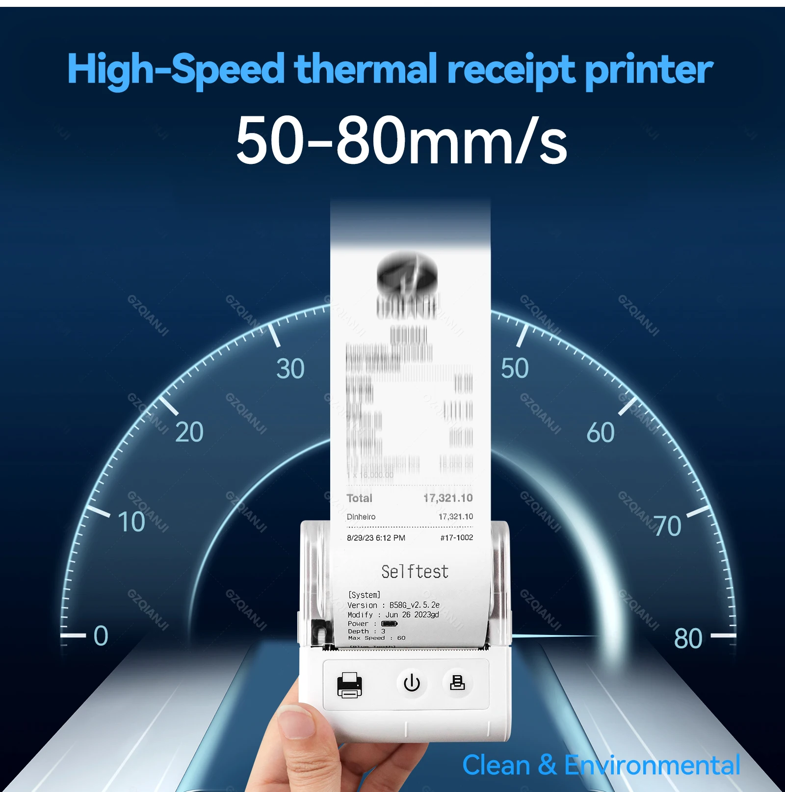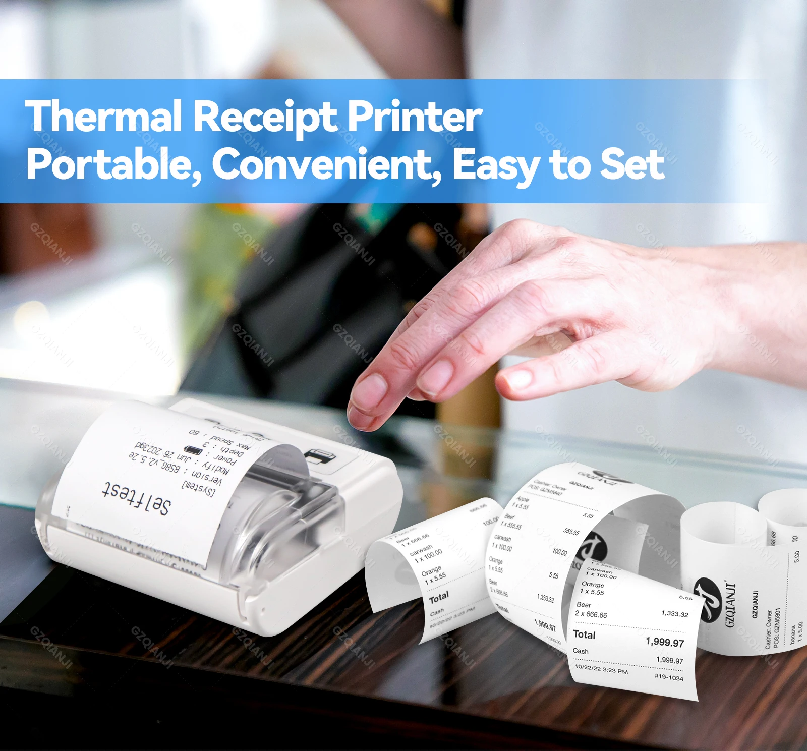 Thermal receipt printer, 48mm print width, 50-80mm/s print speed, clear printing and high efficiency.