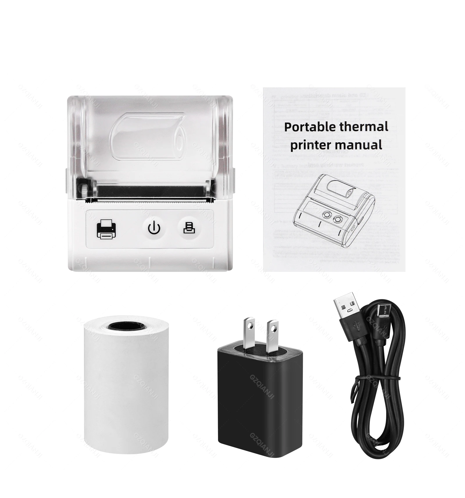 1 set receipt printer( 1 pcs thermal printer, 1 pcs USB cable, 1 pcs power adapter,1 roll thermal paper, 1 pcs user manual)